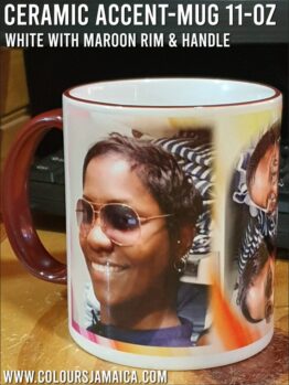 DRINKWARES – RH-MUG11M = Accent Ceramic Mug – White w/MAROON Rim and Handle – 11 oz