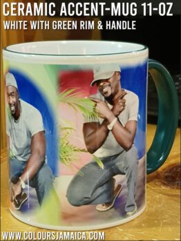 DRINKWARES – RH-MUG11G Accent Ceramic Mug – White w/GREEN Rim and Handle – 11 oz