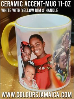 DRINKWARES – RH-MUG11Y Accent Ceramic Mug – White w/Yellow Rim and Handle – 11 oz