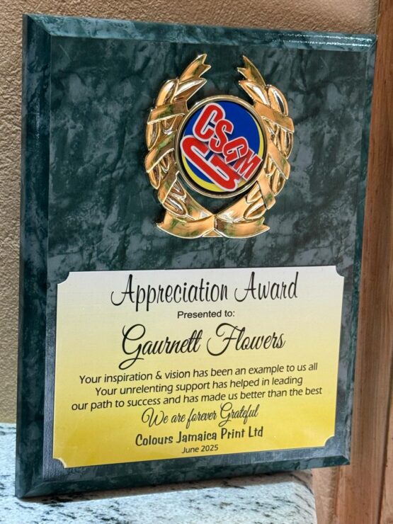 Information provided will be engraved as is submitted. Colours Jamaica will not be held liable for incorrect submission. Please take the time to review and do a proper spell check. At Colours Jamaica we “cut & paste” information received whenever we engrave products. Therefore, clients are advised to pay special attention to upper- and lower-case lettering. All orders are produced exactly as was submitted. The production of the order will be initiated upon payment.